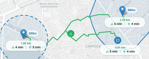 Cartographie pour vos trajets à vélo. Itinéraires sécurisés, mesures et tracés d'isochrones